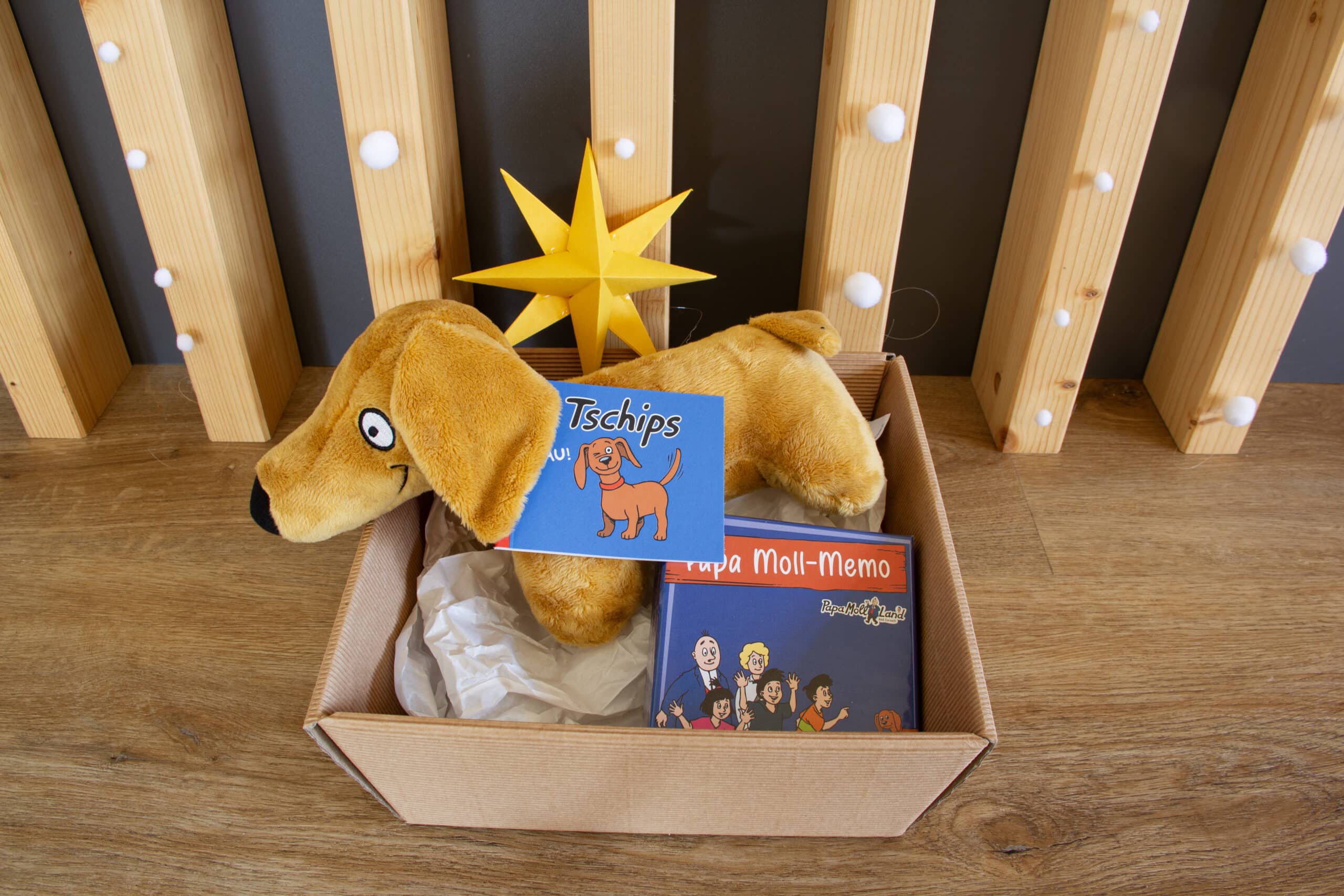 Gift idea with Papa Moll memo, plush Tchips and mini “WAU” booklet